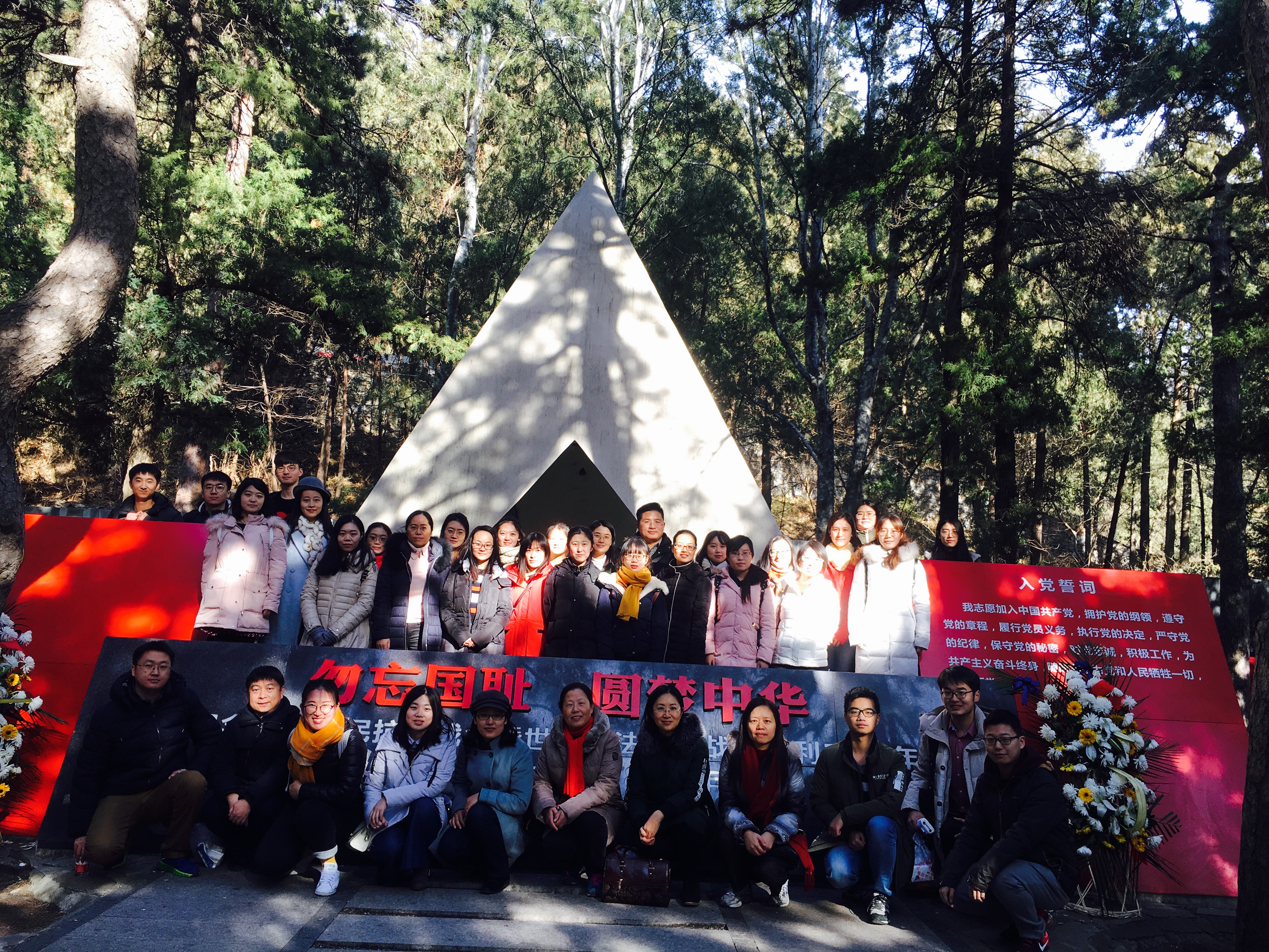 12月9日,教育公司党总支组织师生党员前往香山植物园一二·九纪念亭开展党员活动。上午9点半,党员们到达植物园并合影留念。