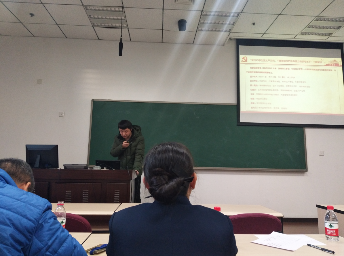 胡莉芳老师代表教师第一党支部汇报了他们的学习和开展的活动如教师代表参加学习讲座,与大兴君谊中学师生召开管理改革模式研讨会,参加“纪念一二∙九,植物园参观活动”等。在专题解读部分,教职工第一党支部选择了“农村教育”的主题,结合十九大报告中的建设教育强国战略和建设教育强国“两步走”战略,分析了农村教育短板的客观现状,并从财政投入、团队队伍建设和硬件设施完善等方面提出了建议。