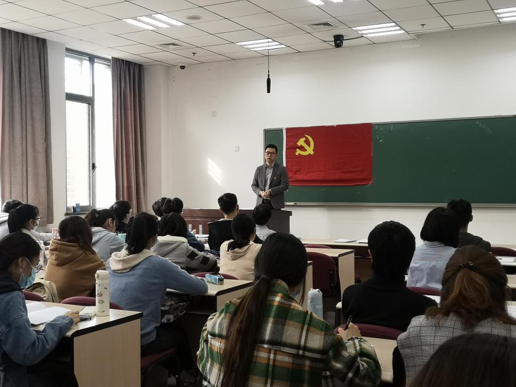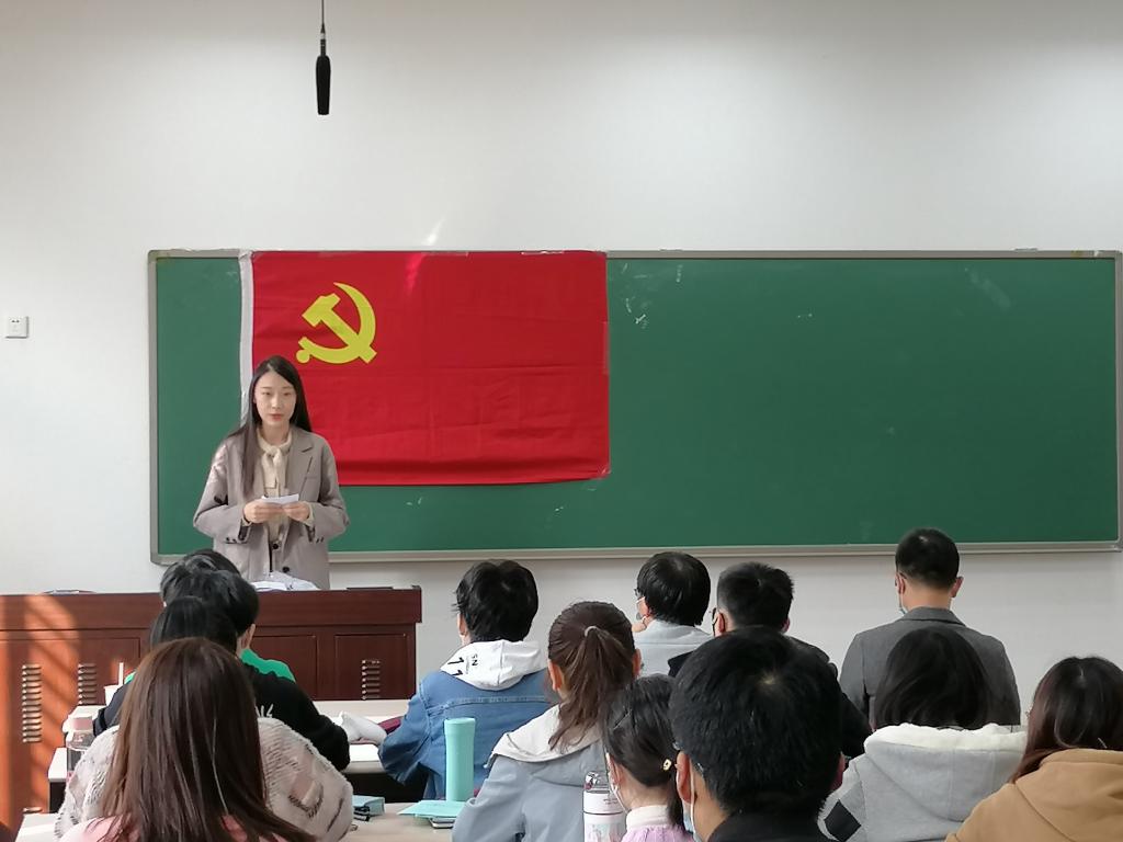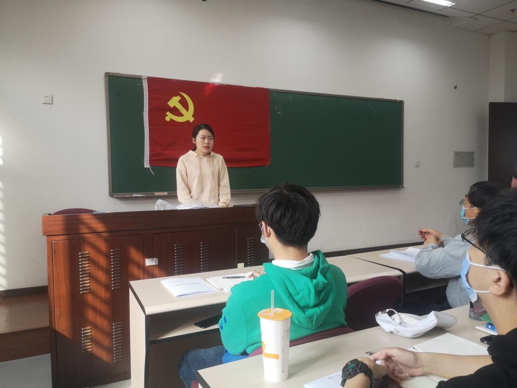 数学公司2020级硕士生张迎泽代表数学公司入党积极分子发言。她表示,成为一位人大人,非常渴望加入党组织,将自己的个人价值与国家和人民的利益更好的结合起来,为建设社会主义贡献自己的力量与热血,不断将党的正能量传递给人民群众。她认为,仔细研读经典著作,认真参加党课的学习与讨论等,才能成为更适应当今社会具有入党资格的青年。