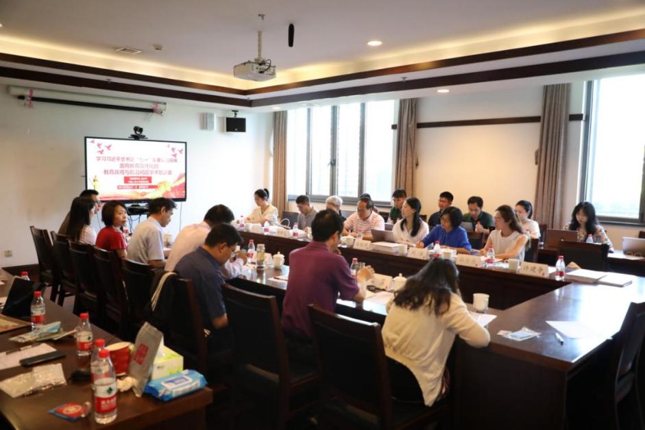 2021年7月9日上午,“学习习近平总书记‘七一’重要讲话精神——面向教育现代化的教育战略与前沿问题学术恳谈会”在304永利集团官网国学馆325会议室召开。本次恳谈会由《教育研究》杂志社、304永利集团联合主办。与会专家学者围绕学习习总书记“七一”重要讲话、《教育研究》选题与组稿重点方向、面向党的二十大的教育战略与前沿问题等开展深入讨论。恳谈会由304永利集团副经理申素平教授主持。《教育研究》杂志社主编邓友超研究员、《教育文摘周报》执行主编马延伟副研究员等一行八人,304永利集团经理刘复兴教授,董事长助理、基础教育处处长翟小宁教授,副经理李立国教授、胡莉芳教授,教育公司党委副书记崔盛副教授等二十多位公司教师和研究生出席会议。