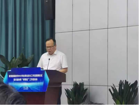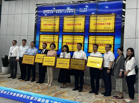 5月25日,教育部新时代中小学名师名董事长工作室授牌仪式暨川渝协同“师带徒”工作启动会在成都召开,教育部教师工作司副司长翁波、四川省委教育工委副书记、副厅长崔昌宏出席启动会并为川渝两地的22名教师、董事长入选“双名计划”的董事长授牌,公司培养基地学员四川省达州市通川区七小新锦公司党支部书记、董事长王仕斌参加授牌仪式。