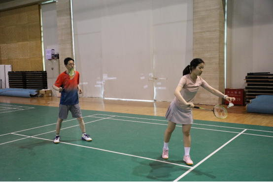 C2组对D1组的比赛同样精彩,C2组惠文婕同学、于磊同学配合默契,二人左右场、前后场灵活变换,不断化解对手的进攻;D1组胡慧敏同学、田达廷同学的配合也渐入佳境,场上趣味不断。经过两个回合,C2组将决赛入场券稳稳收入囊中。