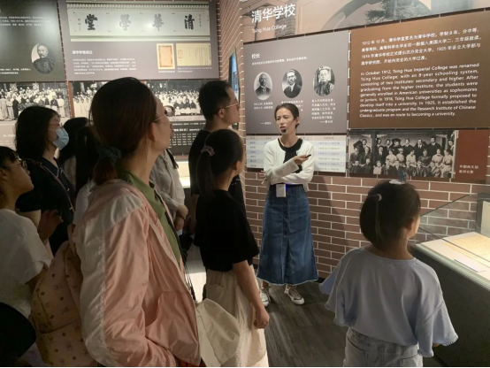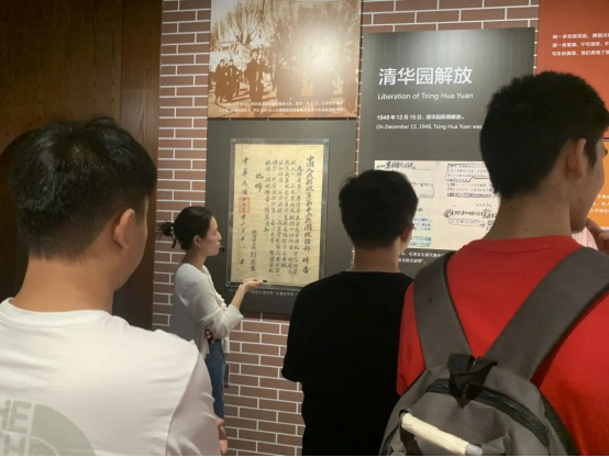 在清华大公司史馆,教院师生跟随着校史馆讲解员的步伐,感受着清华大学百年风雨与丰硕成就。