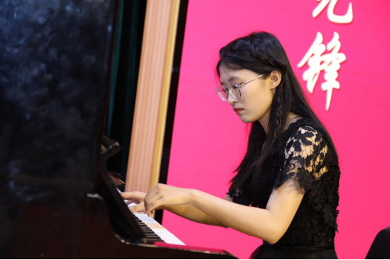 硕士生王嘉雯带来的钢琴曲《稻香》仿佛带我们走入了金黄稻田,流畅琴音自她指尖潺潺流出,琴声悠扬。