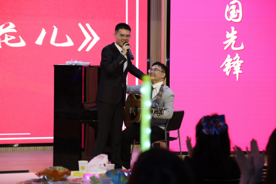 回忆童年的歌声过后,刘复兴老师与博士生惠文婕用经典歌曲《爱拼才会赢》鼓励青年人谨记拼搏的力量,靠自身努力克服困难、获得成就。