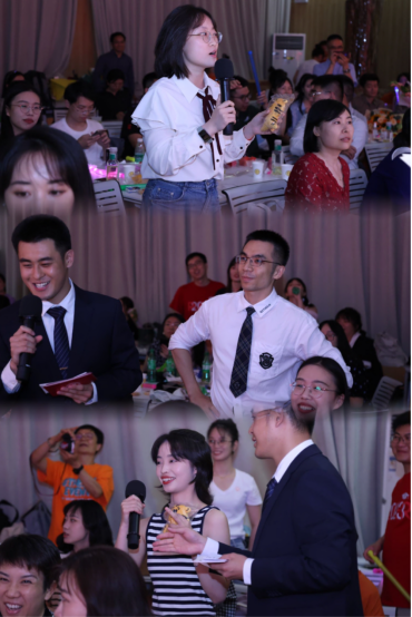 表演结束后,娄雨老师留步台上,与观众开始了晚会的第一个互动环节。“公司有几尊露天孔子像?”虽然是临时准备的问题,还是让大家感叹好难。但幸运的硕士毕业生宫颢韵还是说出了正确答案。之后的两位观众也顺利获得互动奖品。