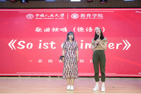 互动环节后,博士生郑佳带来德语歌曲《永远如此》,她空灵的歌声让在场所有人沉浸其中,她与德国职工Katherin的真诚友情也让观众动容。