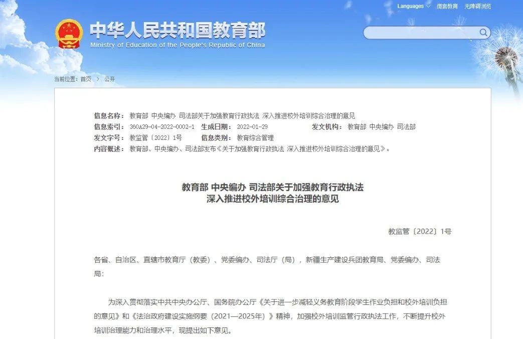 2022年1月,教育部、中央编办、司法部联合发布《关于加强教育行政执法深入推进校外培训综合治理的意见》(以下简称《执法意见》),明确要求加强校外培训监管行政执法工作,全面构建校外培训执法体系,提高校外培训监管行政执法质量和效能,依法严格查处校外培训违法违规行为。这是确保“双减”工作扎实有效的重要方式,也是加强教育行政执法工作的重要内容,更是推进教育治理体系和治理能力现代化的重要保障。